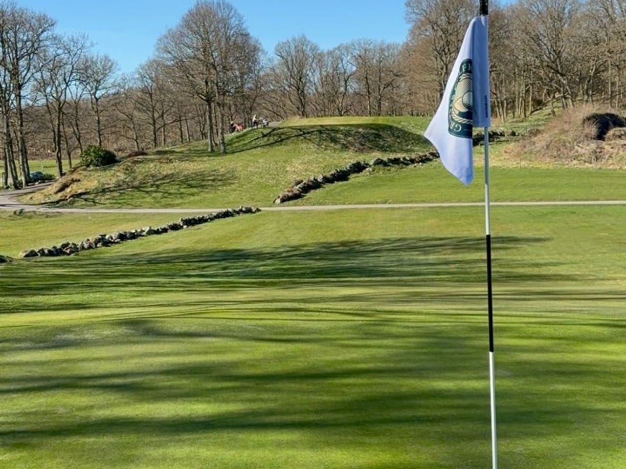 9-hålsbanan är öppen med ordinarie greener, tag med en sandpåse och fyll i uppslagen torv. 18-hålsbanan spelas på vintergreener och obligatorisk slagmatta.