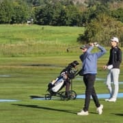 Elliot Cornelius med inspel på hål 9. Foto: Erik Cornelius