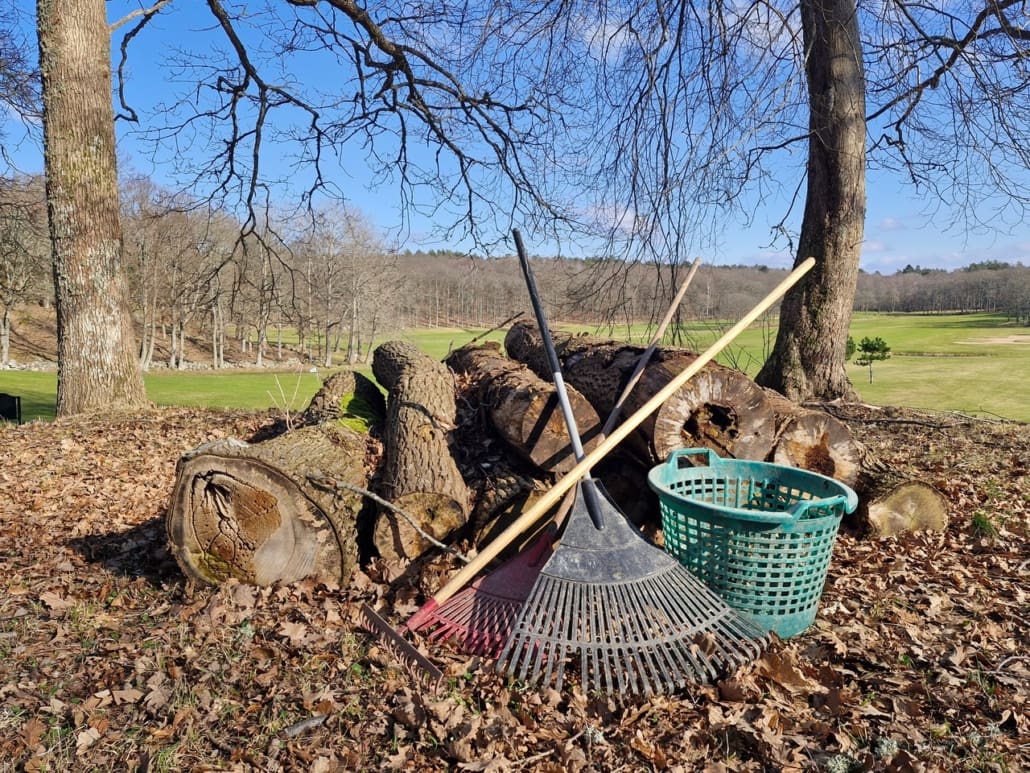 Efter vår skogsgallring behöver vi hjälp med att städa bort grenar och spill för att få banan och grönytorna rena.