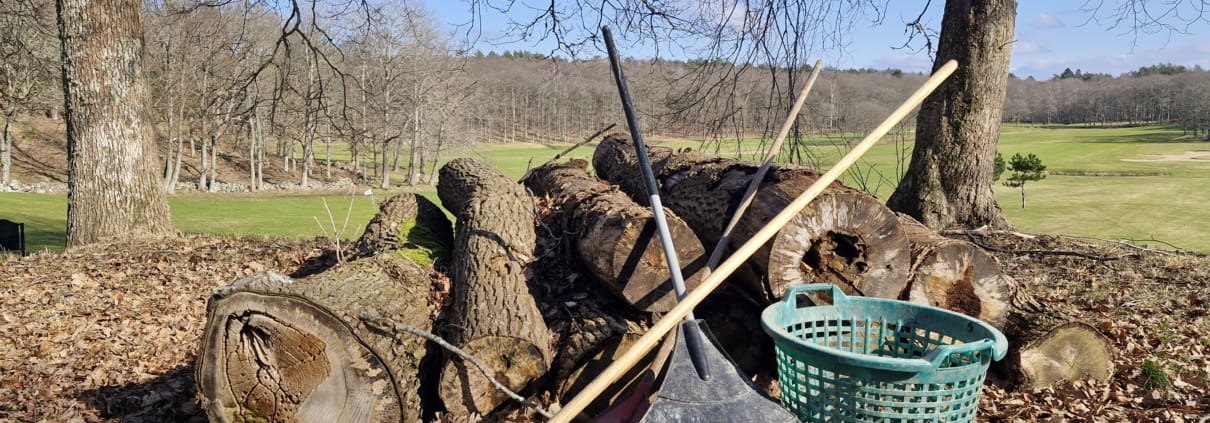 Efter vår skogsgallring behöver vi hjälp med att städa bort grenar och spill för att få banan och grönytorna rena.